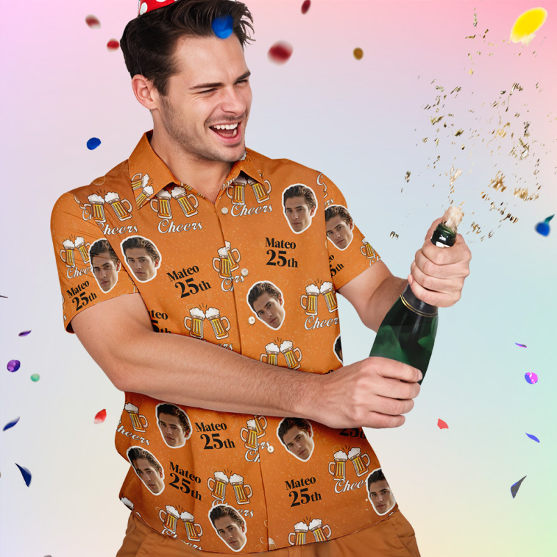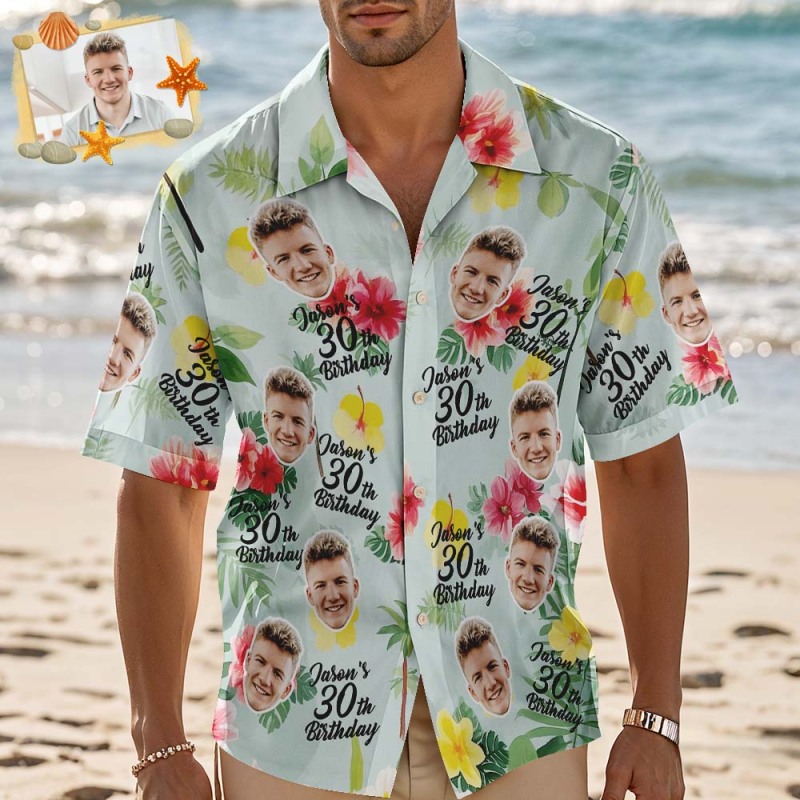 Personalized Birthday Couple Hawaiian Shirt Custom Face Name Summer Birthday Party Green Shirt Aloha Birthday Hawaiian Shirt Birthday Gift
