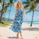 Personalized Blue FLowers Face Sling Long Dress Custom Face Photo Dress for Women Fun Summer Vacation Gift