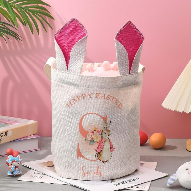 These delightful personalised premium linen Easter Bunny ear baskets make a wonderful gift this Easter! You can add any name to make it special, and they’re perfect for Easter egg hunts, ready to be filled with yummy treats!