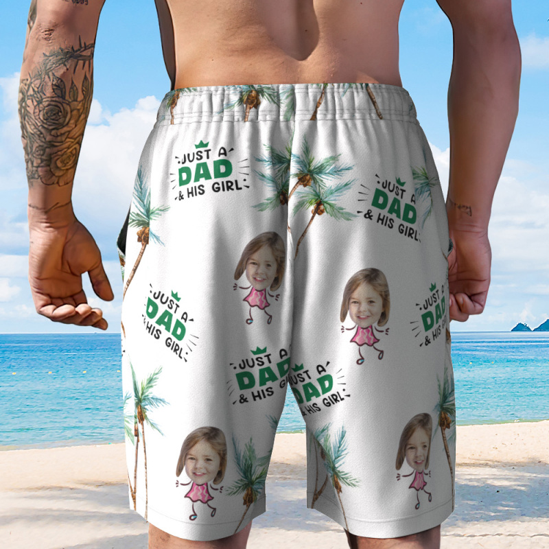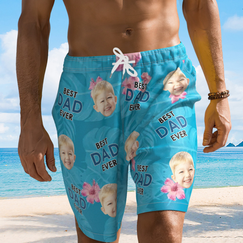 Personalized Face Mens Swim Trunks Custom Best Dad Ever Tropical Swim Blue Shorts Fathers Day Gift