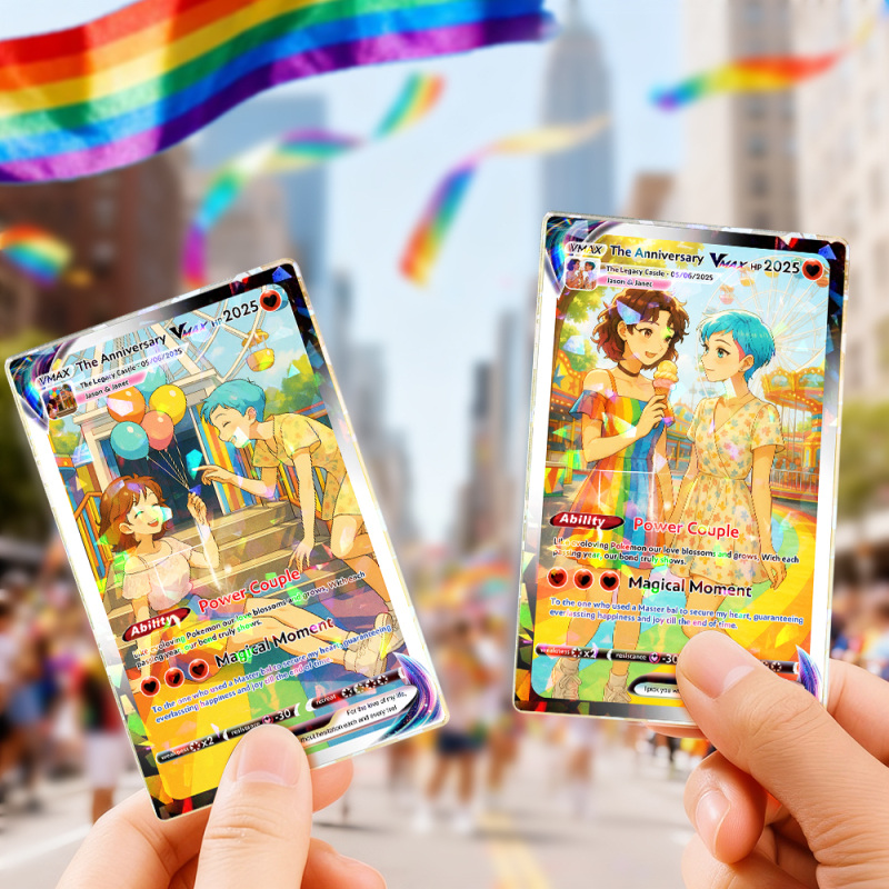Personalized LGBT Christmas Trading Card Custom Comics Style Collectible for Couples Pride-Inspired Holiday Gift