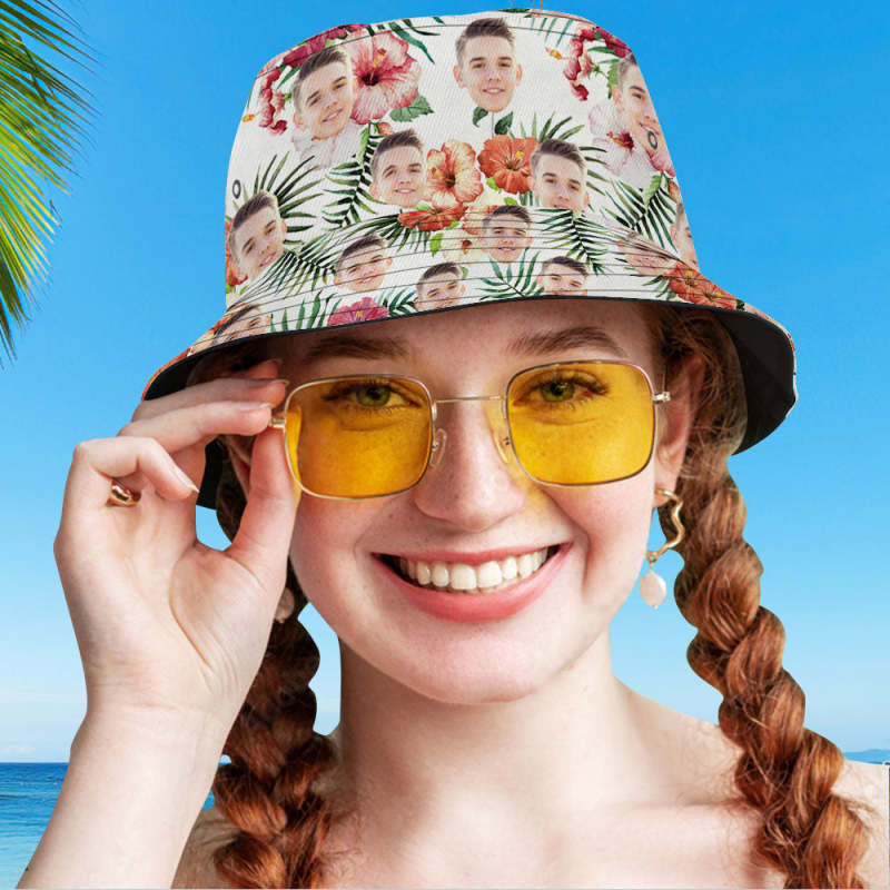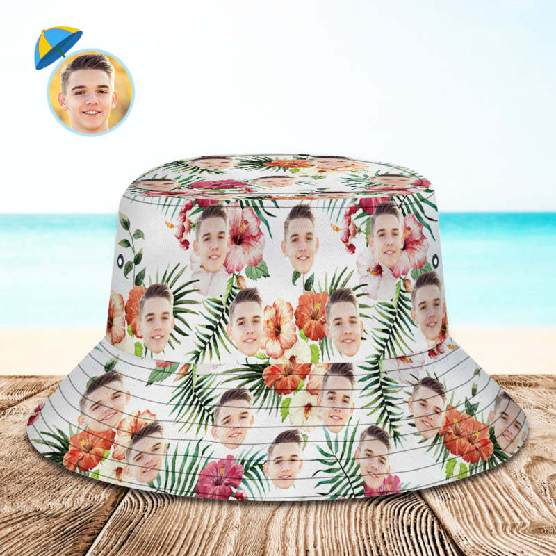 Personalized Photo All Over Print Tropical Flower Print Hawaiian Fisherman Hat Bucket Hat