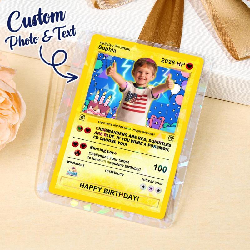 Celebrate any special moment with this one-of-a-kind custom Poke Card. We’ll turn your photo into a unique anime-inspired art card that makes the perfect personalized gift for fans of all ages.