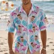 Personalized Pink Leaf Flamingo Hawaiian Shirt Custom Face Photo Shirt for Men Fun Summer Vacation Outfit