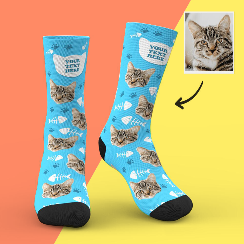 Made In AU Custom Face Socks Add Pictures and Name My Face Socks - Cat