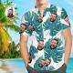 Custom Dog Face Hawaiian Shirt Custom Tropical Shirts Green Leaves Beach Shirt