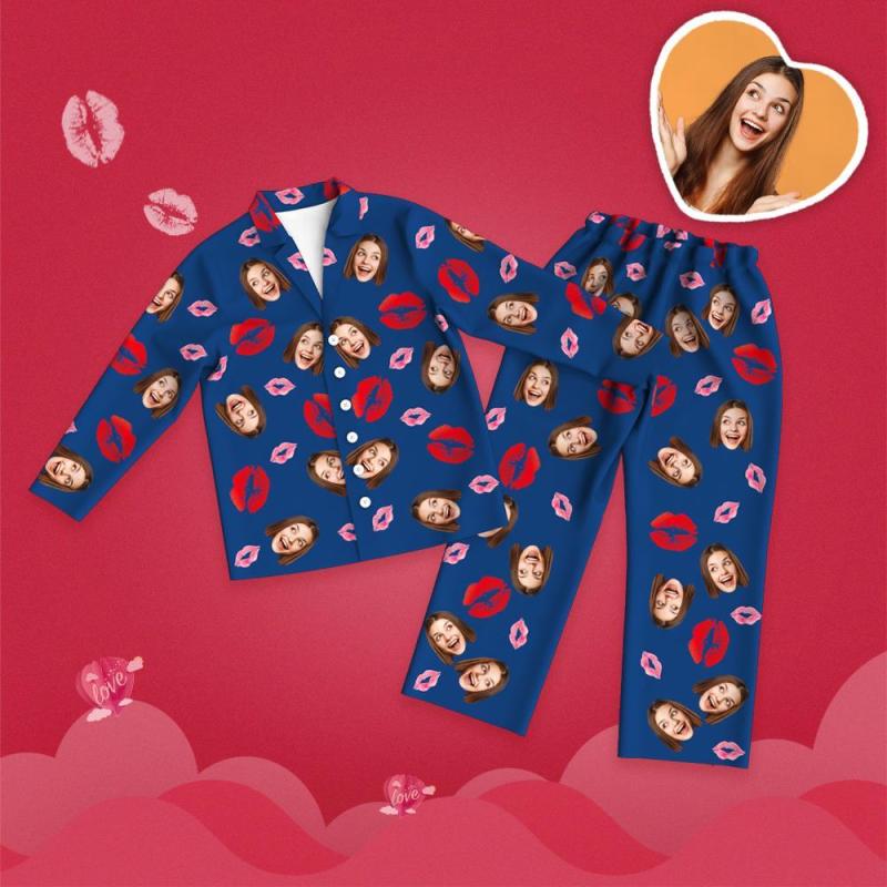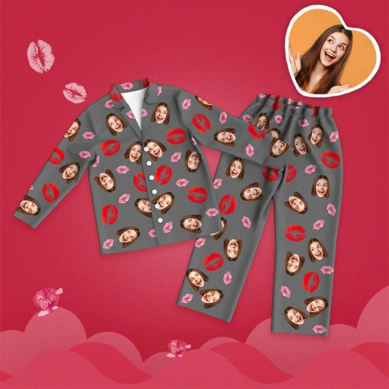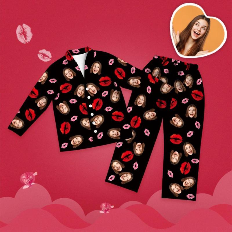 Valentine's Day Custom Face Lip Printed Long Sleeve Pajamas Set
