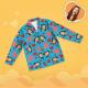• Matching shirt with notched lapels; button front.